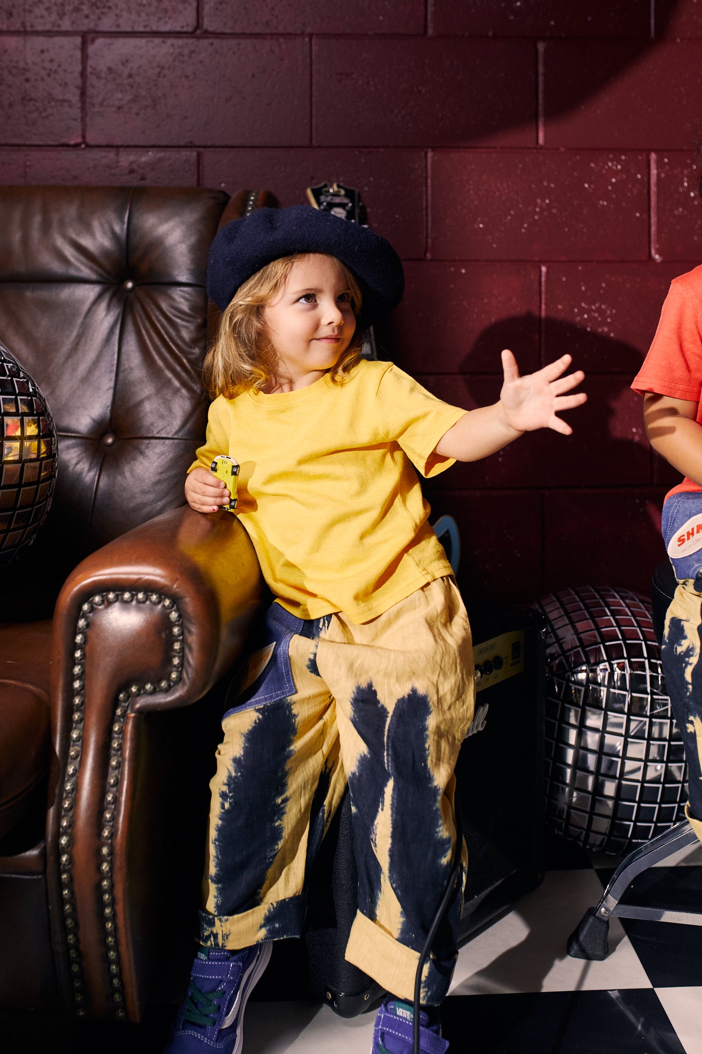 Kids pictured are aged 4 and 3 and all wear their age sizes. Petite kids will also generally fit the size below.